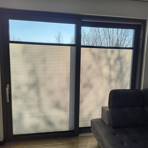 - tkanina plisowana 15 mm wykonana z poliestru o bardzo dobrych parametrach izolacji przeciwsłonecznej, pokryta od strony zewnętrznej powłoką "perłową" która zapobiega nadmiernemu nagrzewaniu pomieszczenia.