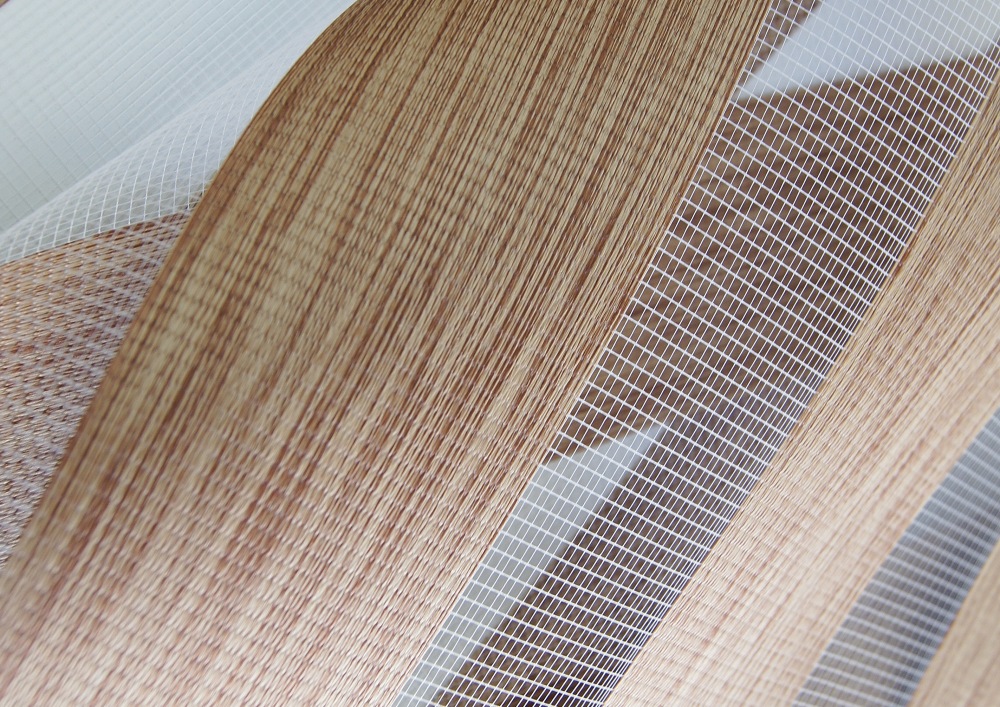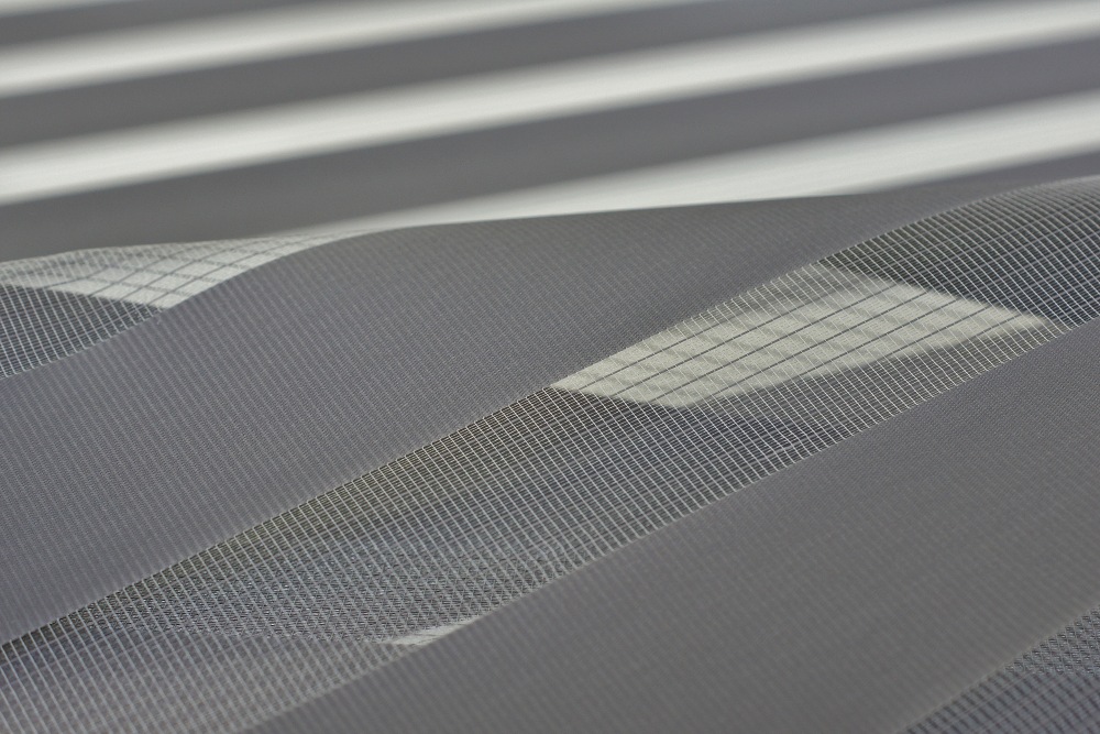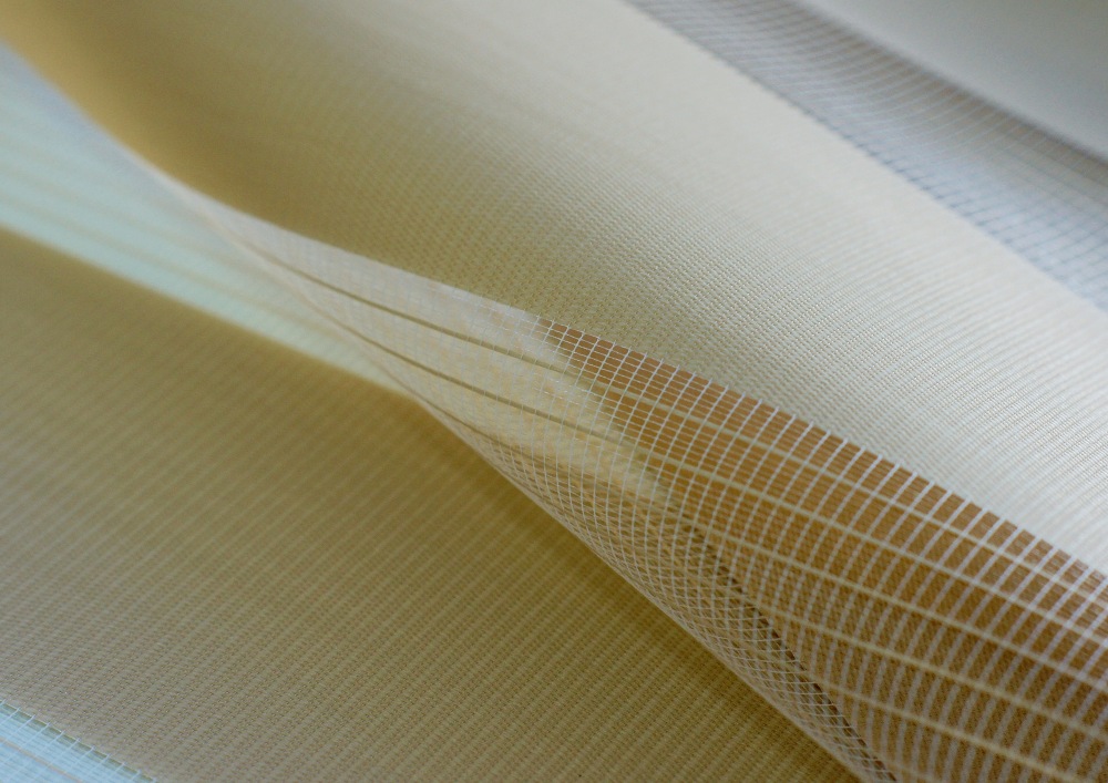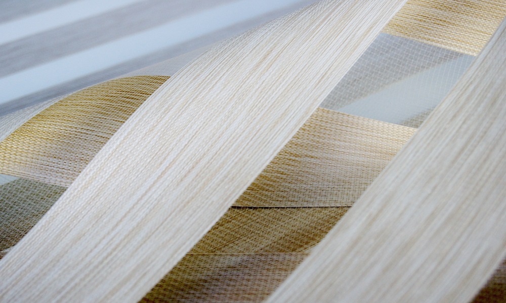 Tkanina "dzień i noc" to materiał o naprzemiennie ułożonych poziomo pasach o różnej przepuszczalności światła: jeden pas jest transparentny (lub półprzezroczysty), a drugi zaciemniający.